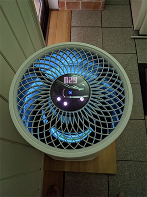 この室内空気殺菌器を設置したので、新型コロナウイルスに対する三密の心配は全く不要になりました。